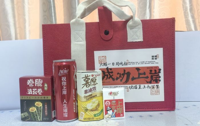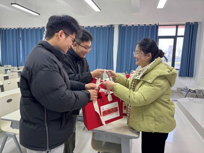 活动现场,学院领导与毕业班辅导员们共同为学子们发放了精心准备的“考研冲刺加油包”。每一份礼物都蕴含着独特的祝福:“可乐”寓意“百事可乐,考试顺利”;“薯愿”象征“‘薯’你最强,心愿达成”;“海苔卷心脆”代表“才思敏捷,答题精准”;“抽纸”则贴心祝愿同学们“擦去焦虑,展露笑颜”。这些暖心的礼物让学子们倍感鼓舞,现场气氛温馨热烈。